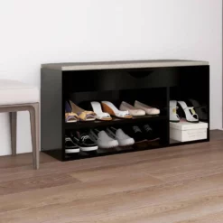 VidaXL Schoenenbank Met Kussen 104x30x49 Cm Spaanplaat Zwart