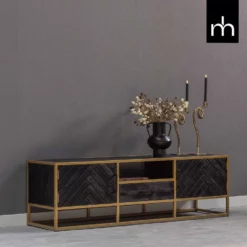 Arabic House Tv-Meubel Melamine Zwart/Bruin – 180x35x40cm