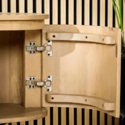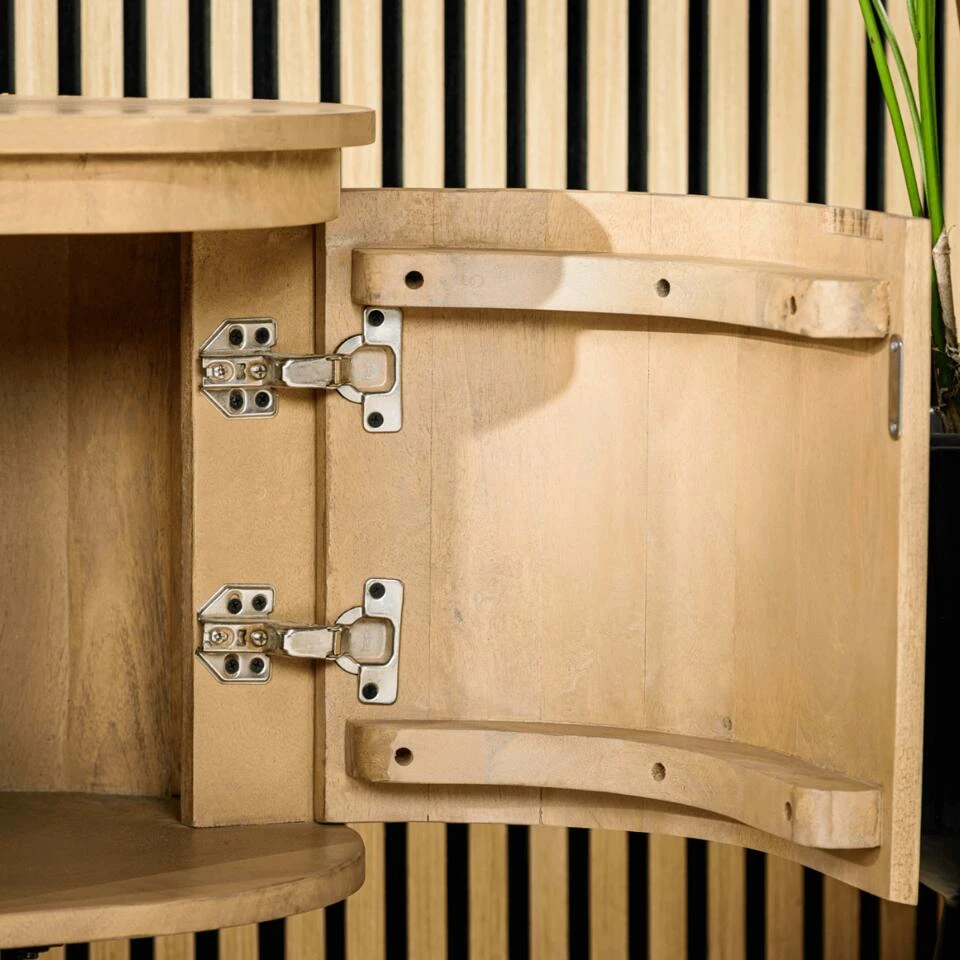 De Beli TV-meubel is een prachtig stuk meubilair van het woonmerk Vurna, dat perfect past in elke moderne of natuurlijke interieurstijl. Met een lengte van 155 cm biedt deze tv-meubel voldoende ruimte voor jouw televisie en andere accessoires. Gemaakt van acaciahout, heeft deze tv-meubel een mooie natuurlijke uitstraling die perfect past bij de rustieke sfeer van een natuurlijke woonstijl. De kast heeft een lichtbruine kleur en een opvallende houtnerf die zorgt voor een uniek karakter. Het onderstel van de tv-meubel is gemaakt van stevig metaal, wat een mooi contrast vormt met de natuurlijke uitstraling van het hout. De Beli tv-meubel beschikt over twee dichte opbergplekken aan de zijkanten van de kast, elk met een deur in een ribbel vorm voor een speels effect. Hier kun je allerlei spullen opbergen die je niet in het zicht wilt hebben tijdens het tv-kijken. In het midden van de kast bevinden zich twee legplanken die ideaal zijn voor het opbergen van je favoriete accessoires, boeken of dvd’s. Het bovenste oppervlak van de kast is perfect voor het plaatsen van je televisie of andere decoratieve accessoires. Het biedt ook voldoende ruimte om je favoriete planten, foto’s of kaarsen te plaatsen. De Beli tv-meubel is dus niet alleen functioneel, maar ook een prachtige decoratieve toevoeging aan je woonkamer. Al met al is de Beli tv-meubel een geweldige keuze voor iedereen die op zoek is naar een tv-meubel dat stijlvol, praktisch en van hoge kwaliteit is. Of je nu een liefhebber bent van een moderne of natuurlijke woonstijl, deze tv-meubel past perfect bij jouw interieur en biedt tal van opbergmogelijkheden voor al je spullen. Beli is verkrijgbaar in verschillende uitvoeringen, kijk hiervoor op onze website.