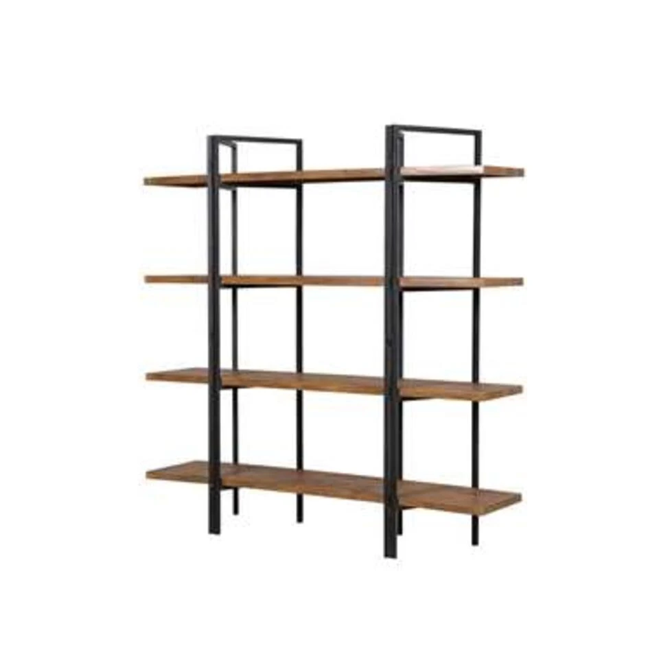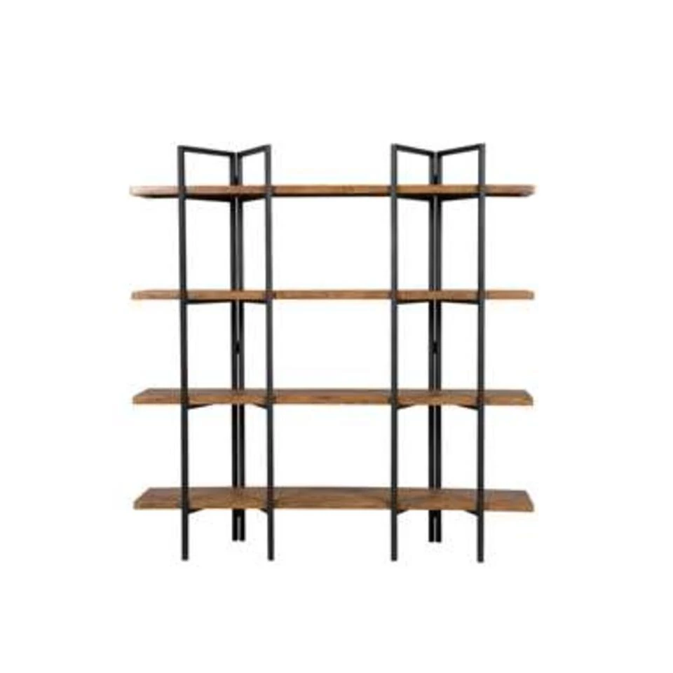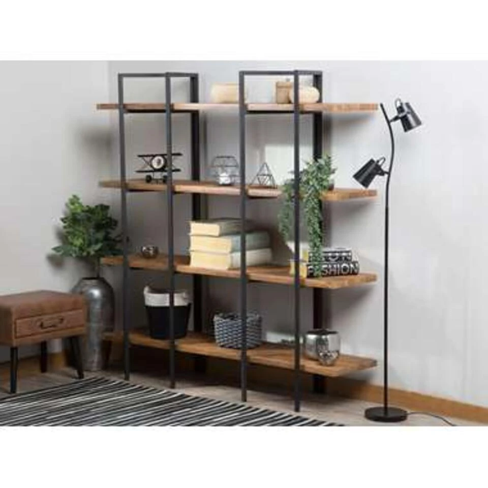 Praktische boekenkast in industrieel ontwerp. Deze praktische boekenkast is de ideale opbergruimte voor boeken, familiefoto’s, kantoorbenodigdheden of decoratieve elementen en combineert op unieke wijze een moderne look met de grootst mogelijke veelzijdigheid in gebruik. De duidelijke lijnen en de interessante combinatie van kleuren en materialen gemaakt van hout en donkergrijs metaal maken deze kast tot een onweerstaanbare blikvanger. De trendy industriële look is geschikt voor elk huis!