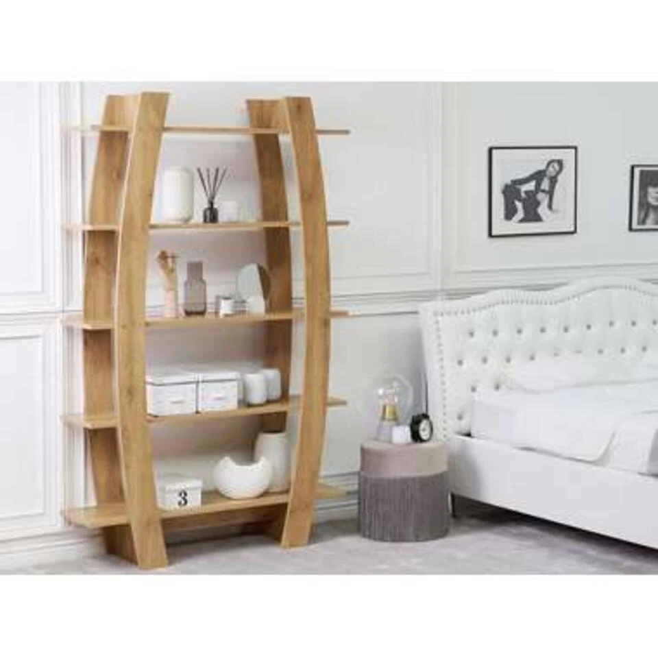 Moderne, open boekenkast. Verrijk je huis met deze boekenkast die praktische opbergruimte combineert met modern design! Op de vijf planken is genoeg ruimte voor je souvenirs, favoriete boeken, foto’s of andere items die je altijd bij de hand wilt hebben. Gemaakt van stevig houtvezelplaat met PVC-coating, vereist minimaal onderhoud en gaat jaren mee. Door het open design is dit model zelfs te gebruiken als sfeervolle roomdivider.