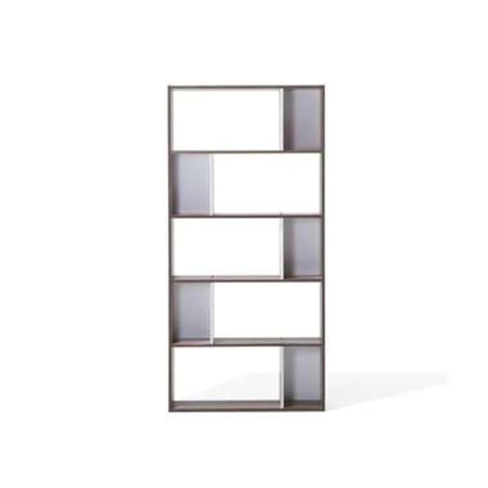 Decoratieve boekenkast met modern design. Deze unieke boekenkast is geschikt als praktische opbergruimte voor jouw boeken en als tentoonstellingsruimte voor decoratiestukken. Dankzij de open structuur is deze boekenplank ook ideaal om als scheidingswand te gebruiken. De verspringende opstelling van de grotere, open en kleinere, gesloten compartimenten geven de stevige plank een speels effect en een dynamische uitstraling.