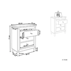 Belangrijkste eigenschappen: Handige en royale lades, Perfect voor zowel slaapkamer als woonkamer, Elegant design, Gespiegeld oppervlak voor een glam look, Stabiele en duurzame constructie, Beschermdoppen voor oppervlaktebescherming