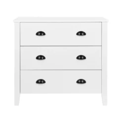 Tijdloos dressoir met 3 praktische lades in wit. Een ladekast met een universele uitstraling waardoor deze eigenlijk bij elke interieurstijl past. De combinatie van de ingetogen vormgeving, de frisse witte kleur en de drie praktisch ruime lades maken deze kast gewild voor zowel een meer klassiek als modern interieur.