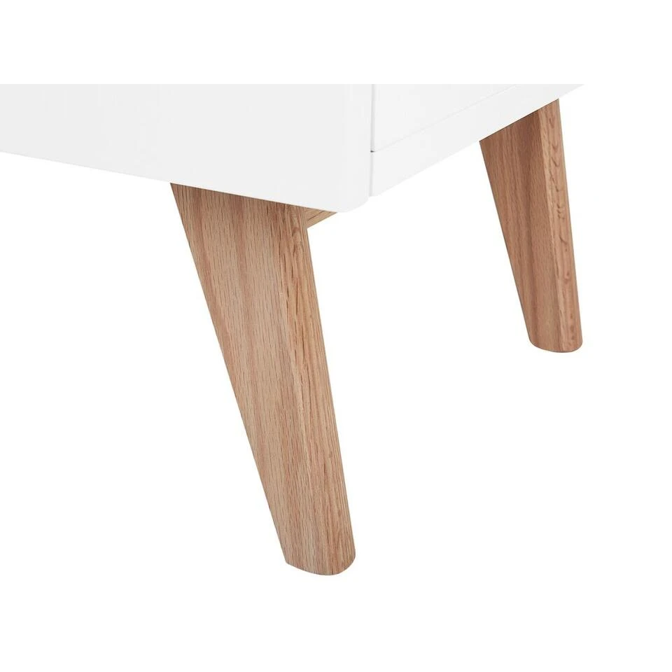 Functionele, praktische en decoratieve ladekast in klassiek wit. Ordening dankzij veel opbergruimte en tegelijkertijd decoratief en modern design – dit dressoir maakt het mogelijk! Het tijdloze ontwerp in eenvoudig wit harmonieert prachtig met de slanke, enigszins schuine poten van licht eiken. De heldere, frisse kleuren zorgen voor een vriendelijke sfeer. De zes praktische en ruime laden met interne afmetingen bieden veel opbergruimte.