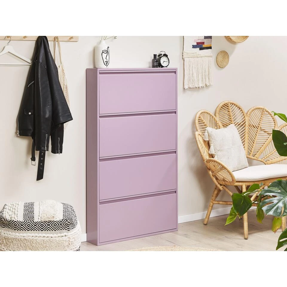 Minimalistische metalen schoenenkast met 4 kleppen. De schoenenkast is uitgevoerd in een elegante grafietzwarte tint en laat een onmiskenbare look achter dankzij de greeploze, gladde frontjes. De 4 praktische opbergvakken voor schoenen kunnen gemakkelijk worden geopend en hun opbergruimte zorgt voor orde in de ingang van je huis. Dit visueel aantrekkelijke meubel ziet er ook prachtig uit als roomdivider. De precieze productie, de robuuste metalen constructie en de onderhoudsvriendelijke oppervlakken maken de schoenenkast tot een hoogwaardig, duurzaam en praktisch accessoire voor jouw woonruimte.