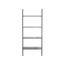 Ladder kast met vier planken in donkerbruin en zwart. Organiseer je boeken en tijdschriften en berg andere kleine spullen op een slimme en stijlvolle manier op. Deze ladderkast in industrieel design staat perfect in jouw woonkamer of thuiskantoor. Het gepoedercoate zwarte frame van de ladderkast is duurzaam en strak tegelijk en houdt de vier planken stevig vast . De ladderkast is afgewerkt met een donker houteffect.