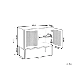 Dressoir met 2 rotan deuren in lichtbruin. Dressoirs hoeven niet langer eenvormig en eentonig te zijn. De natuurlijke rotan deuren van het dressoir vallen op en brengen een grote dosis boho-stijl naar je woon- of slaapkamer. Aarzel niet om decoratie, wat potplanten of boeken op het blad te plaatsen en maak efficiënt gebruik van de ruime kasten eronder. De zwart metalen poten van het dressoir voegen wat kleurcontrast toe en zorgen voor robuustheid en een lange levensduur.