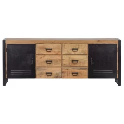 Dressoir met 2 rotan deuren in lichtbruin. Dressoirs hoeven niet langer eenvormig en eentonig te zijn. De natuurlijke rotan deuren van het dressoir vallen op en brengen een grote dosis boho-stijl naar je woon- of slaapkamer. Aarzel niet om decoratie, wat potplanten of boeken op het blad te plaatsen en maak efficiënt gebruik van de ruime kasten eronder. De zwart metalen poten van het dressoir voegen wat kleurcontrast toe en zorgen voor robuustheid en een lange levensduur.