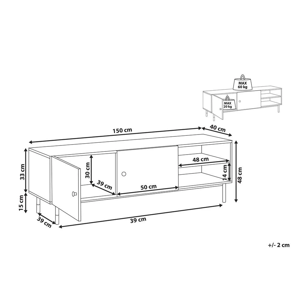 Belangrijkste eigenschappen: Met opening aan de achterzijde welke zorgt voor een gemakkelijke bekabeling, Met extra plank voor accessoires, Retro Stijl, Stabiel en degelijk onderstel, Voldoende opslagruimte