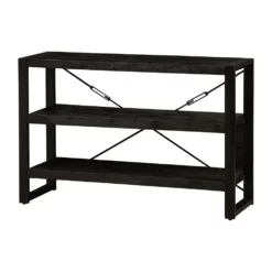 Deze lage boekenkast uit de Minneapolis-collectie neemt door zijn compacte formaat weinig ruimte in, maar biedt genoeg ruimte voor uw meest waardevolle boeken of andere spullen. Het zwarte mangohout geeft de kast een stoer karakter en de stalen frames maken het geheel daarnaast helemaal af. Door de open achterkant leent het meubel zich ook goed als TV meubel.