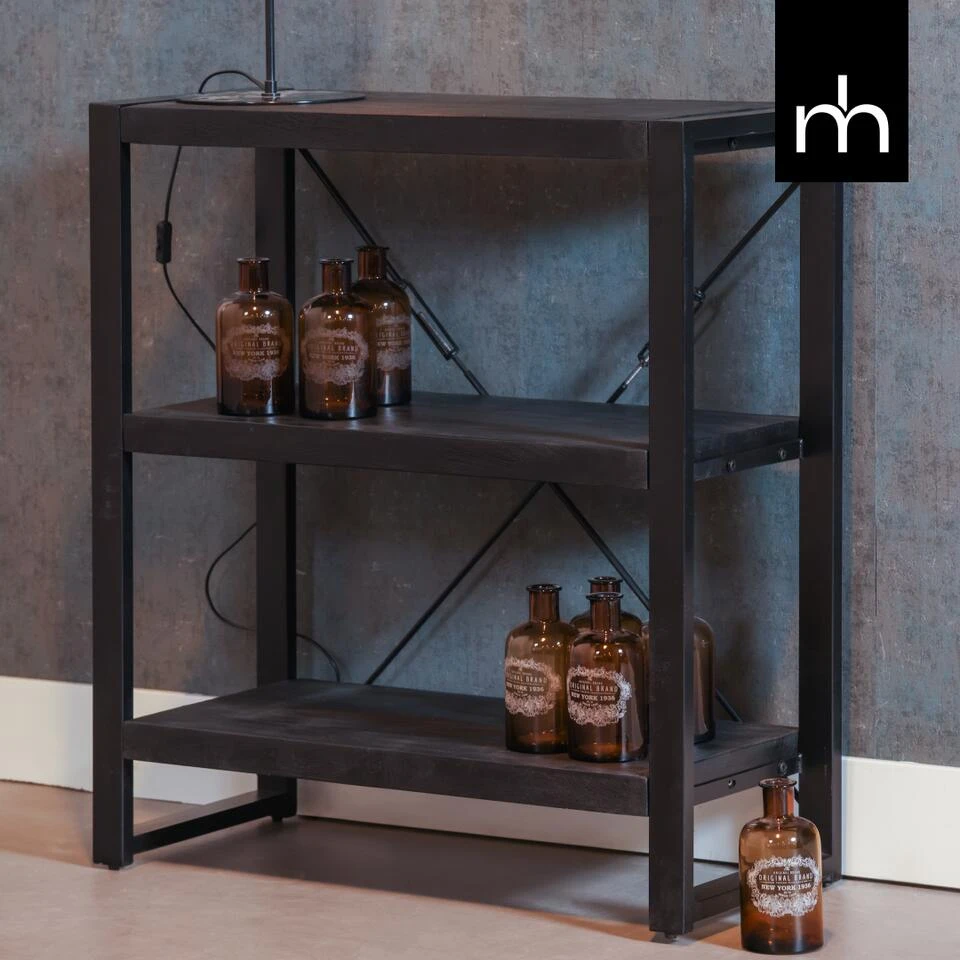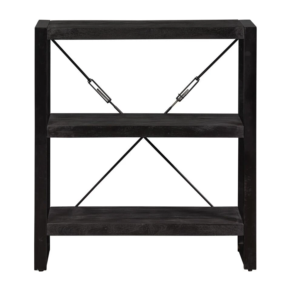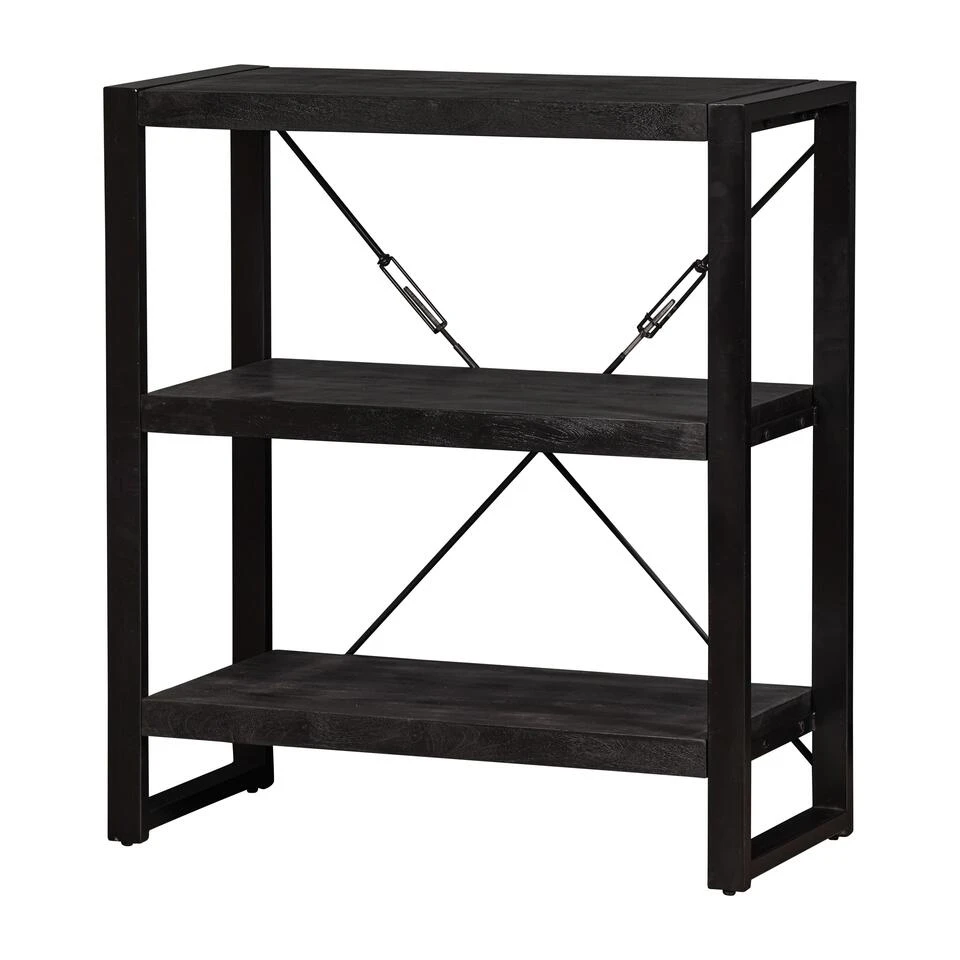 Deze lage boekenkast uit de Minneapolis-collectie is eenvoudig maar tijdloos en past daardoor in ieder interieur. Hij is ideaal voor het opbergen van boeken of andere spullen en kan ook goed gebruikt worden als TV meubel. De combinatie van het zwarte mangohout en de zwarte stalen frames geven het kastje een stoere uitstraling.