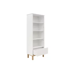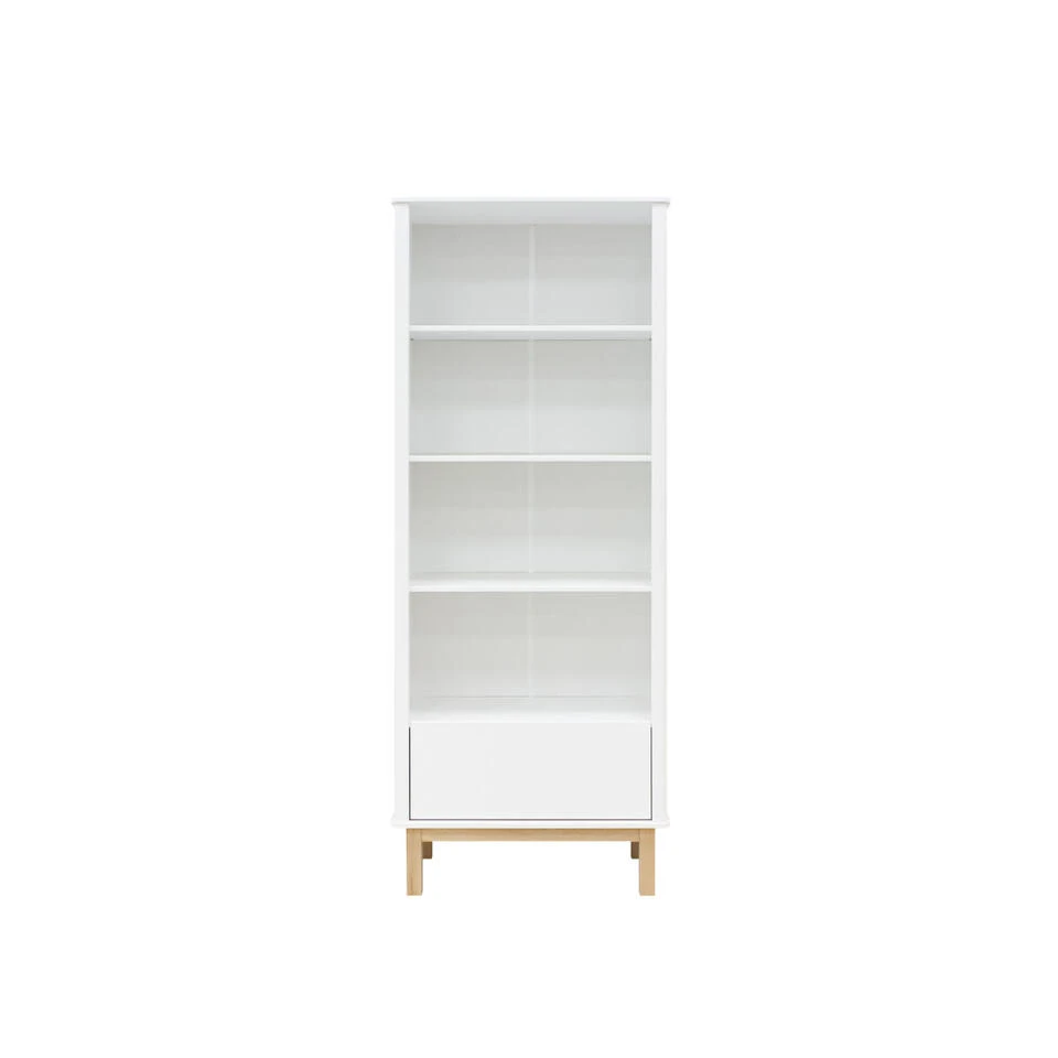 De afgeronde hoeken van deze boekenkast Mika, zorgen voor een luxe uitstraling! De boekenkast staat op een mat afgewerkt eiken onderstel. De greeploze lade biedt veel ruimte om dingen netjes op te bergen. Op de drie ruime schappen is het mogelijk om veel boeken of andere spullen neer te zetten. De kast is afgewerkt met een lak op waterbasis. Deze is kind- en milieuvriendelijk. Combineer deze boekenkast met de andere meubels van de serie Mika.