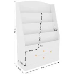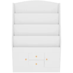 Deze boekenkast is een echte blikvanger en biedt met zijn vier ruime displayvakken veel ruimte voor al uw favoriete boeken en schriften. In de praktische lades en de twee zijvakken met deuren kunnen ook gemakkelijk speelgoed en andere kleine schatten worden opgeborgen. De ruimtebesparende plank is gemaakt van MDF en is gemakkelijk te monteren. Het staat stabiel op meerdere poten.