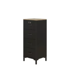 Met zijn 4 verticale laden biedt deze chiffonnière veel opbergruimte op een kleine ruimte. U kunt er veilig uw kleding, modeaccessoires, boeken en andere persoonlijke spullen in opbergen.