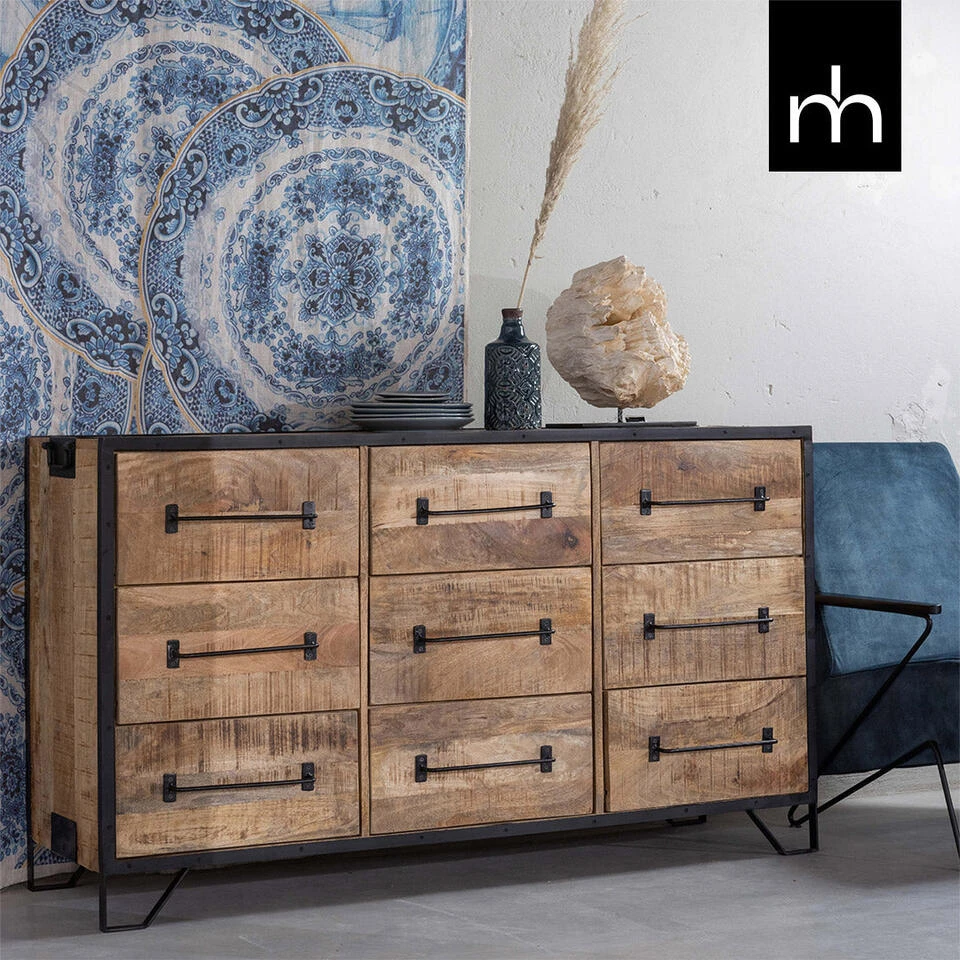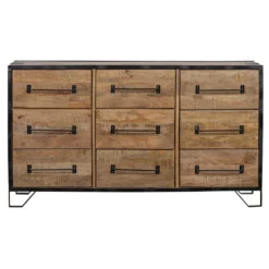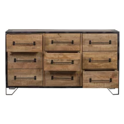 Dit dressoir Baltimore heeft 9 lades die genoeg ruimte bevatten om allerlei eigendommen overzichtelijk op te bergen. Het dressoir is gemaakt van warm mangohout en de lades hebben een stoer van metaal gemaakt handvat, waardoor deze fraaie kast door iedereen zal worden gewaardeerd. Op de bovenkant kunnen vele decoratieve voorwerpen geplaatst worden om de kamer nog fraaier te maken.