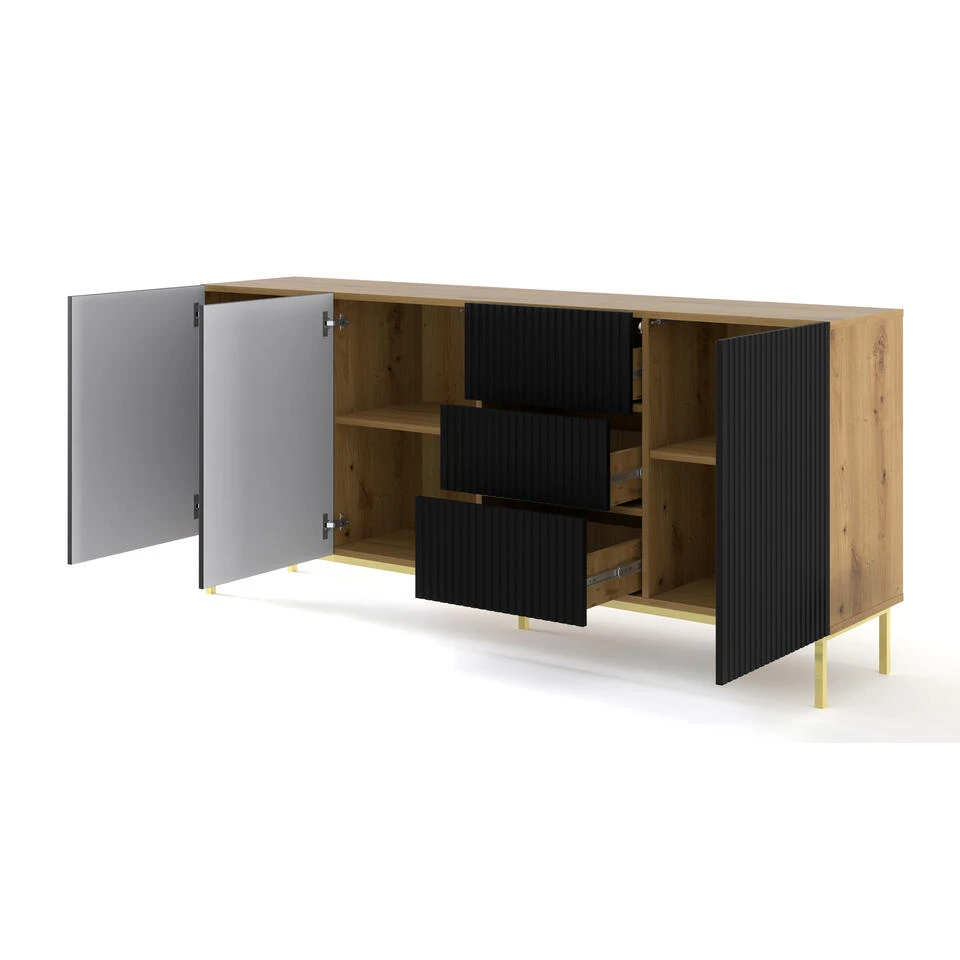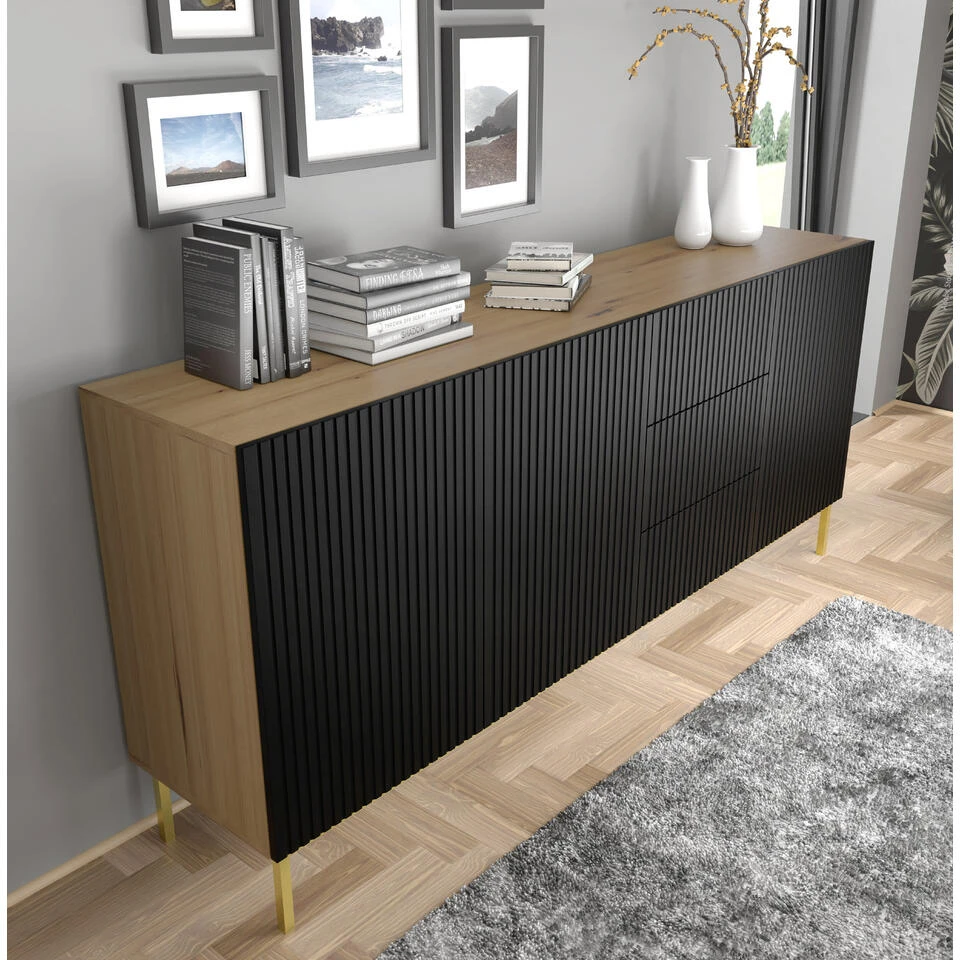 Meubels uit de gepresenteerde Ravenna-collectie worden gekenmerkt door elegantie en een uniek uiterlijk. Ze zullen geschikt zijn voor moderne arrangementen en het interieur van de woonkamer of eetkamer veranderen. De eenvoud van de vormen harmonieert perfect met de gefreesde fronten. Het metalen frame ondersteunt de body zorgt voor stabiliteit en voegt stijl en expressiviteit toe.
