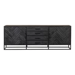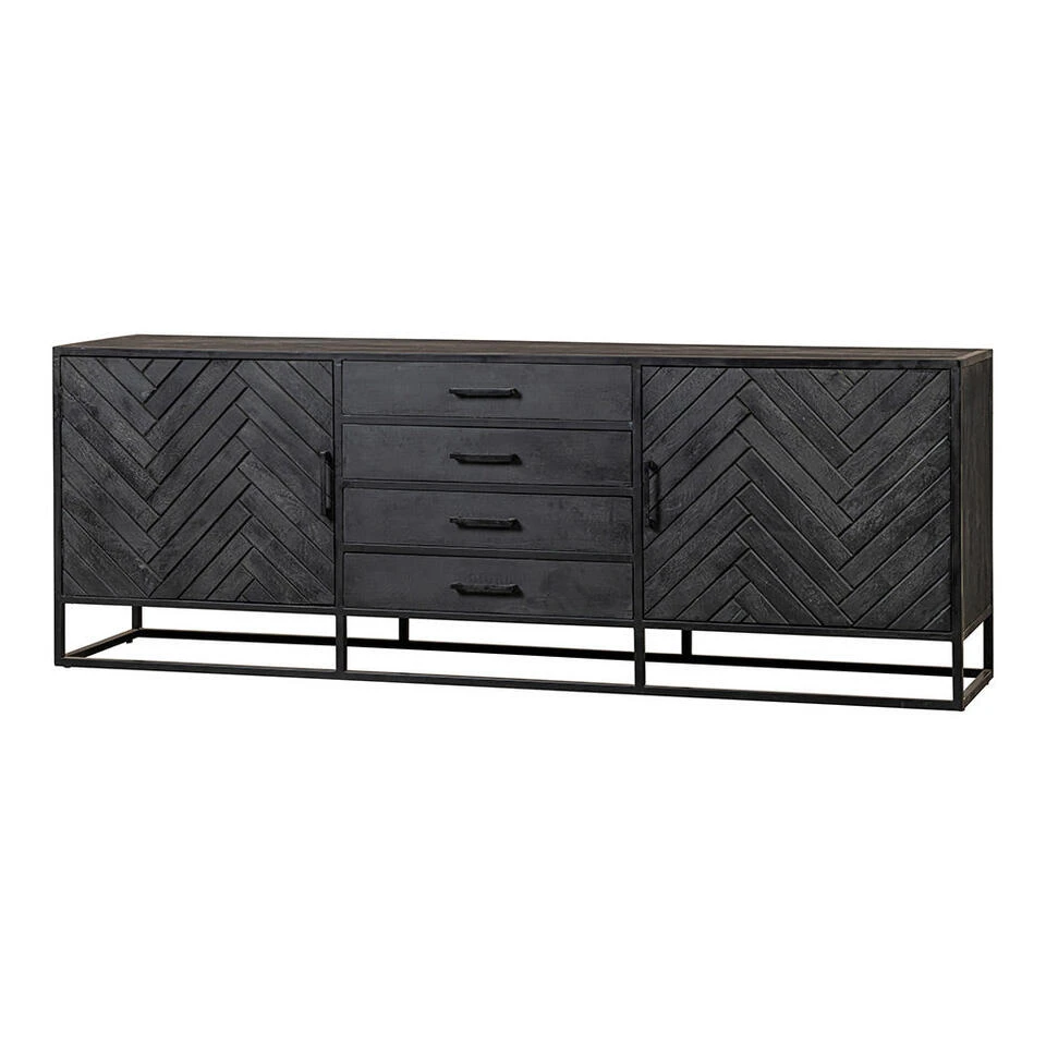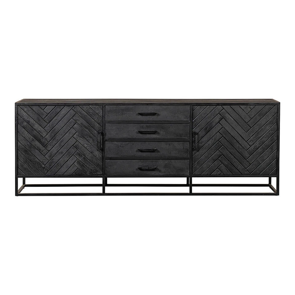 Dit ruimtelijke dressoir uit onze uitgebreide Sienna-collectie zal de toon aangeven in elke ruimte. Het dressoir heeft een visgraat patroon op de deurtjes en heeft daardoor een chique en luxueuze uitstraling. Het dressoir heeft twee deuren en vier lades en biedt voldoende ruimte om jouw spullen in op te bergen.