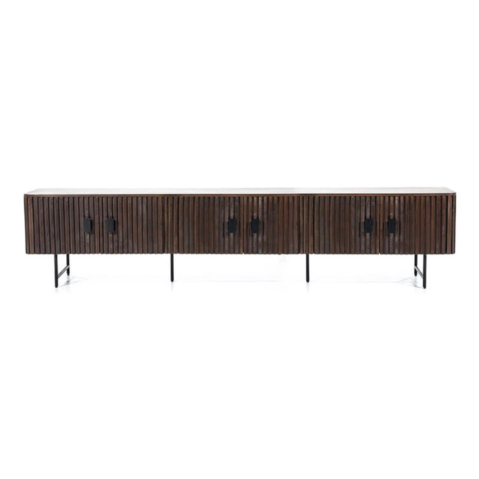 De lamellen in de deuren zijn een bijzondere eyecatcher. Het is een puur staaltje van vakmanschap. Mangohout is een sterke houtsoort. Als je dit combineert met metalen elementen, zoals in deze kast, dan krijg je een oerdegelijk meubel. Twijfel niet, deze kast zal nog jaren dienstdoen in je woning!
