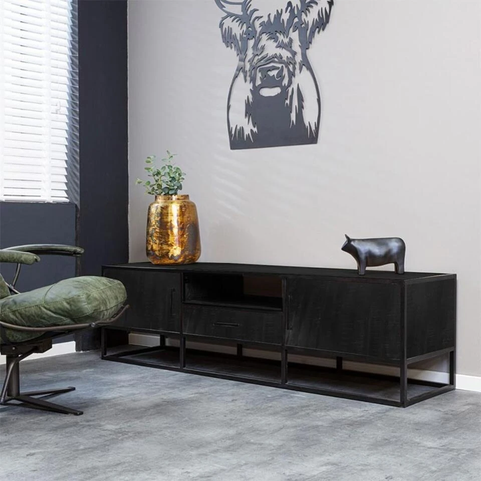 Furndea Morada Tv Meubel Industrieel Zwart – 45x180x50 Cm