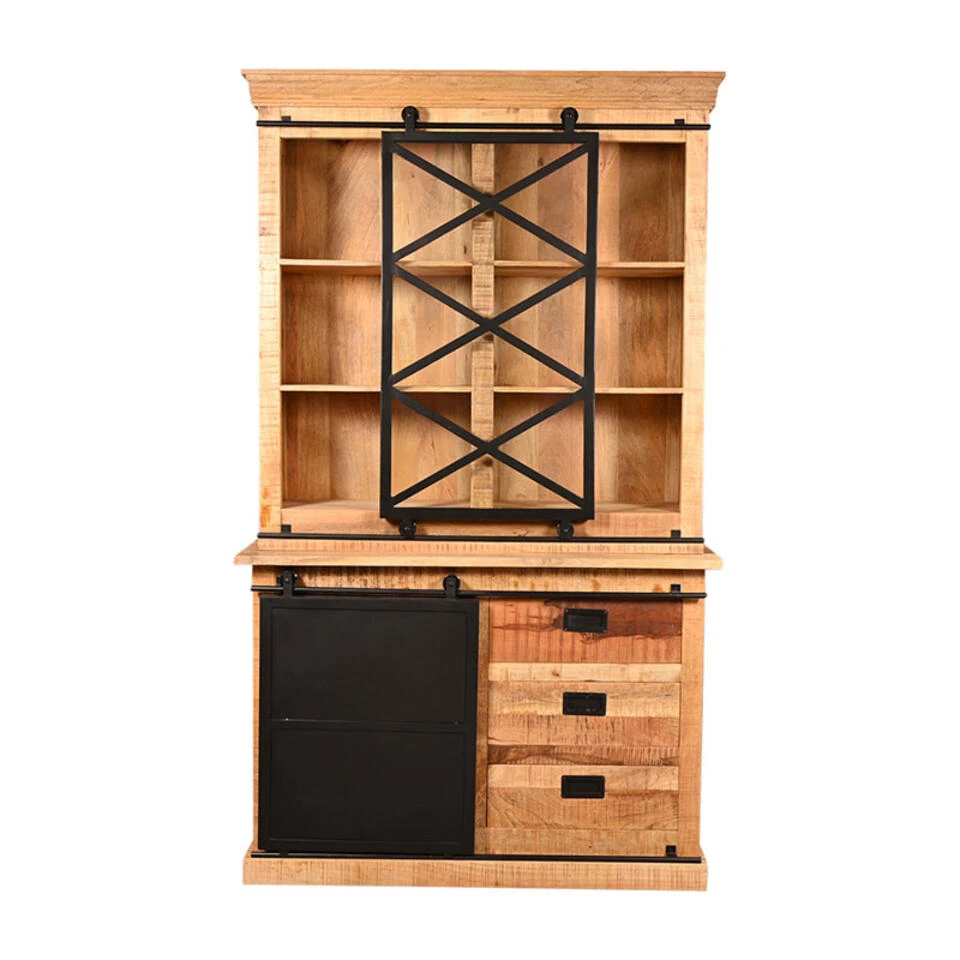 Grote meubels zoals kasten, eettafels worden geleverd op de begane grond of op verdieping mits er een lift aanwezig is. Wij zijn niet aansprakelijk wanneer een product niet past. Wij adviseren je vooraf goed te meten of het ook mogelijk is om je bestelde product op te plek te krijgen waar je hem graag wilt hebben. Mocht je hierover twijfelen, stuur ons dan een mail [email protected] Onze buffetkast Trenso is een typische buffetkast, maar dan in een stoer jasje gestoken. De schuifdeuren op rails verwijzen naar stoere poorten. Het naturel mangohout met duidelijke houtstructuur verhoogt de robuuste look van deze kast. Ze past in je landelijke, industriële, vintage of moderne woonkamer of je keuken. En wil je je home office stijlvol inrichten? Dan doe je dit perfect met deze Trenso buffetkast. Je boeken en paperassen krijgen meteen een plek.