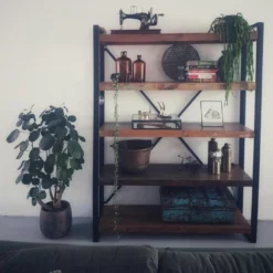 De Boekenkast Industrieel Open Zwart is 150 cm breed. Het zwarte frame bestaat uit staal en de planken zijn gemaakt van gerecycled botenhout. De planken zijn 6,5 cm dik en de tussenafstand 37cm.