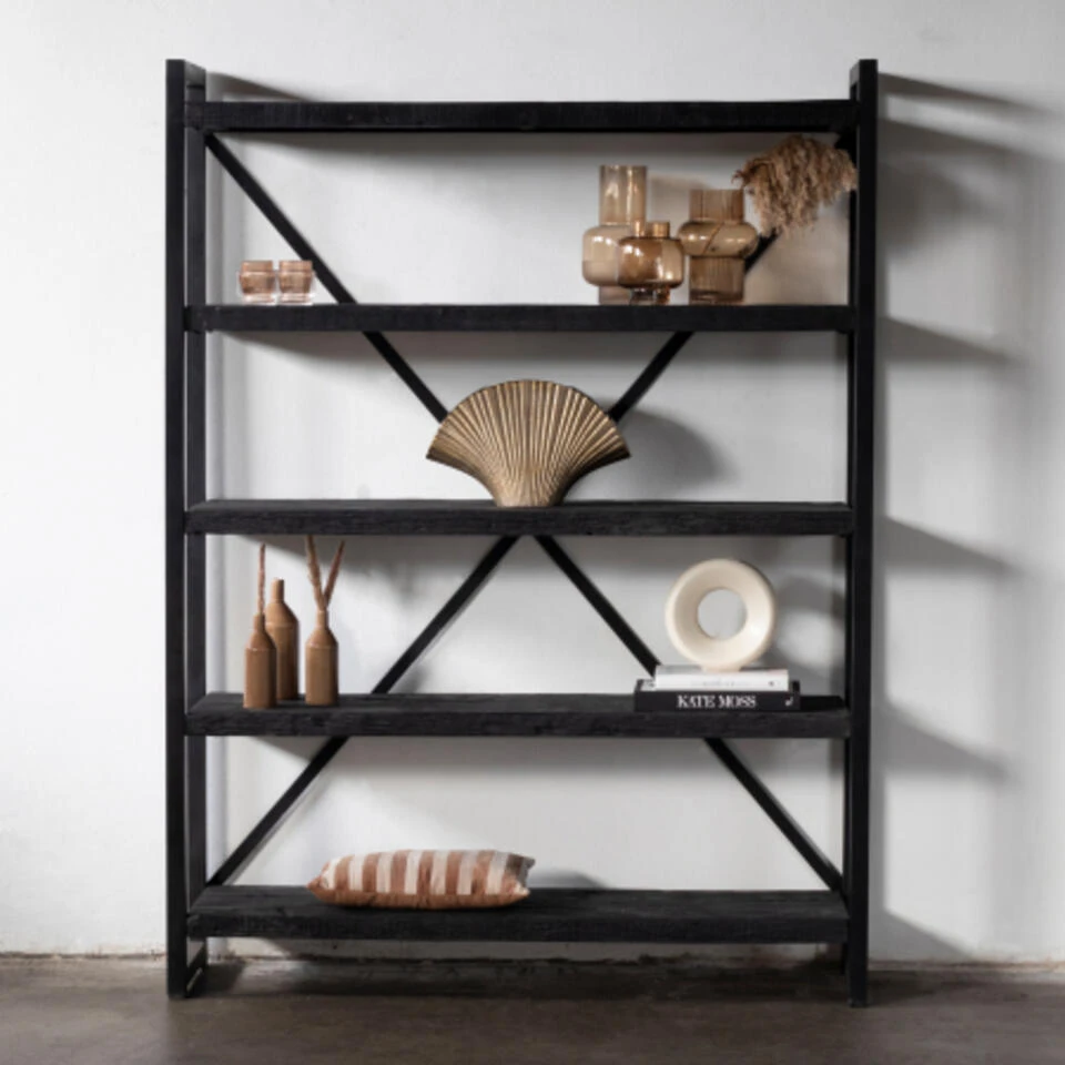 We weten alles van opbergen, maar er bestaan ook items die getoond mogen worden. Met deze kast laat je jouw mooiste boeken of accessoires perfect tot hun recht komen. Deze boekenkast is 150 cm breed. Het zwarte frame bestaat uit ijzer en de planken zijn gemaakt van gerecycled hout. De afstand tussen de planken is 38cm.