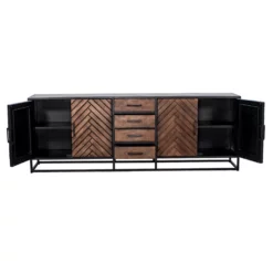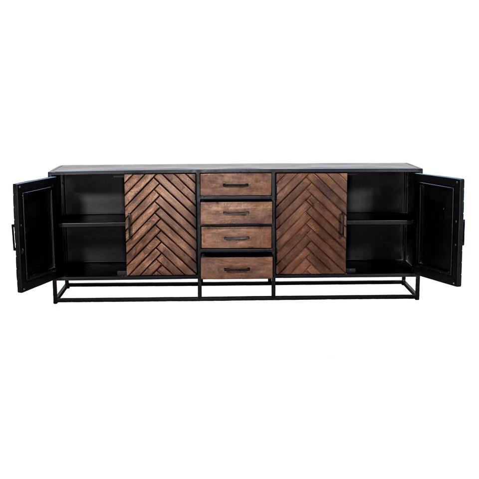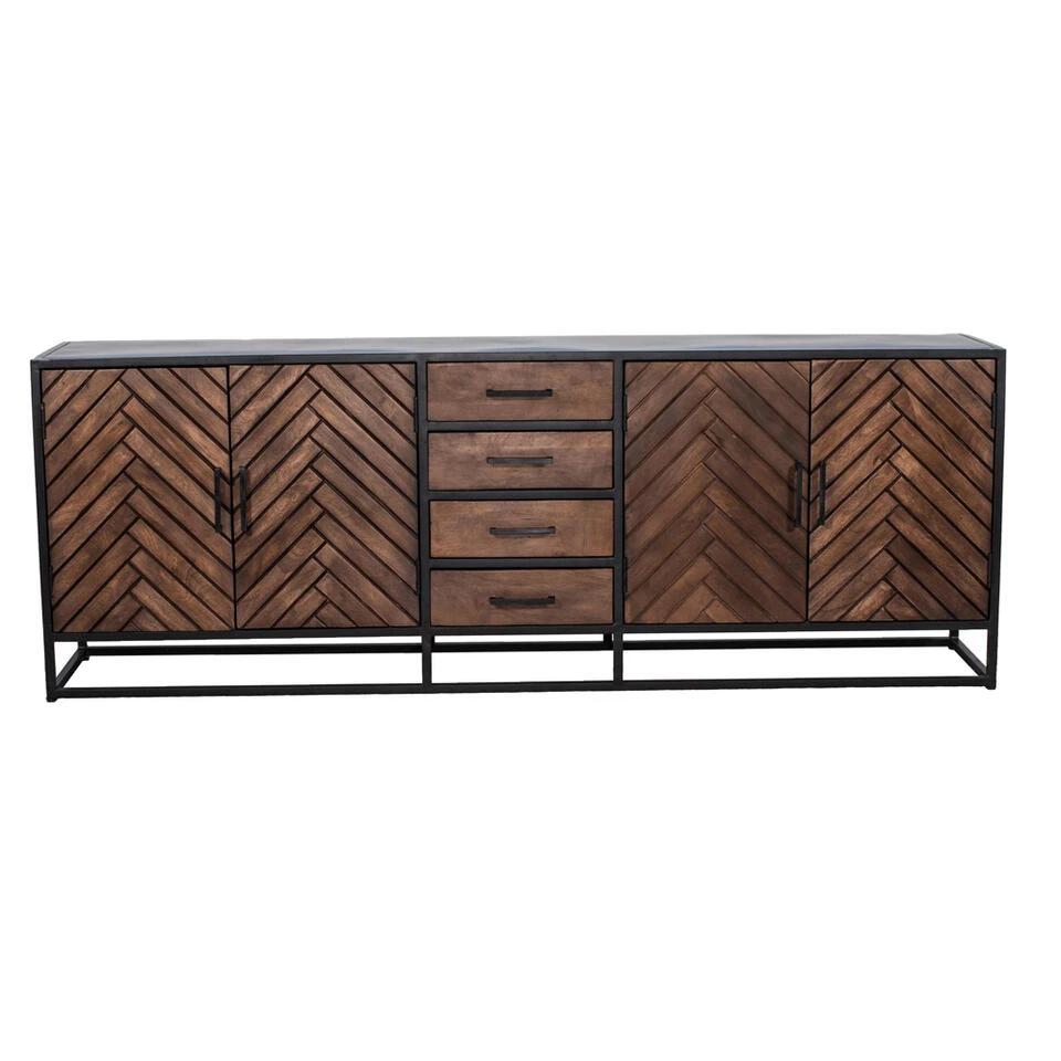 Giga Meubel Dressoir Bruin Visgraat – Mangohout & Metaal – 210x40x75cm