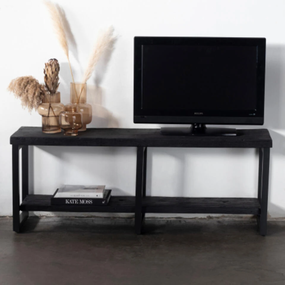 Dit tv-meubel is gemaakt van gerecycled hout in combinatie met ijzer en is in het zwart afgewerkt. Dit tv-meubel heeft 2 grote open vakken. Dit geeft de mogelijkheid om met je mooiste spullen te pronken.