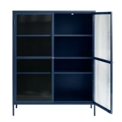 Giga Meubel Vitrinekast Blauw – 40×110,9x140cm – Metaal – Kast Bronco