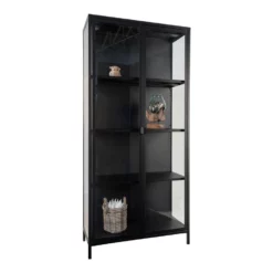 Giga Meubel Vitrinekast Metaal Zwart – 35x80x175cm – Kast Brisbane