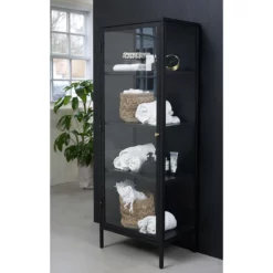 Giga Meubel Vitrinekast Zwart – 40×57,5x160cm – Metaal – Kast Carmel