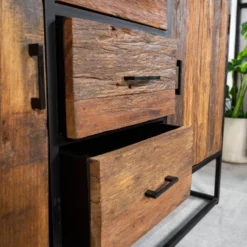 Het industrieel dressoir Rayan is gemaakt van robuust sleeper wood. Het hout bevat een prachtige, zichtbare structuur wat jouw dressoir uniek maakt en een levendige uitstraling geeft!