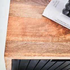 Het frame van de industriële ladekast Felix is gemaakt van zwart metaal. De combinatie met het mangohout geeft deze ladekast een stoere, industriële uitstraling.
