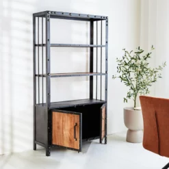 Op zoek naar een prachtige industriële wandkast die genoeg ruimte biedt om je mooiste accessoires op te bergen? Dan is de Chase de kast die jij zoekt! De wandkast heeft een geborsteld stalen frame waardoor de kast een enorm stoere uitstraling heeft. Daarnaast heeft de Chase nog ruimte achter de mangohouten deurtjes om spullen op te bergen die je liever niet in het zicht zet!