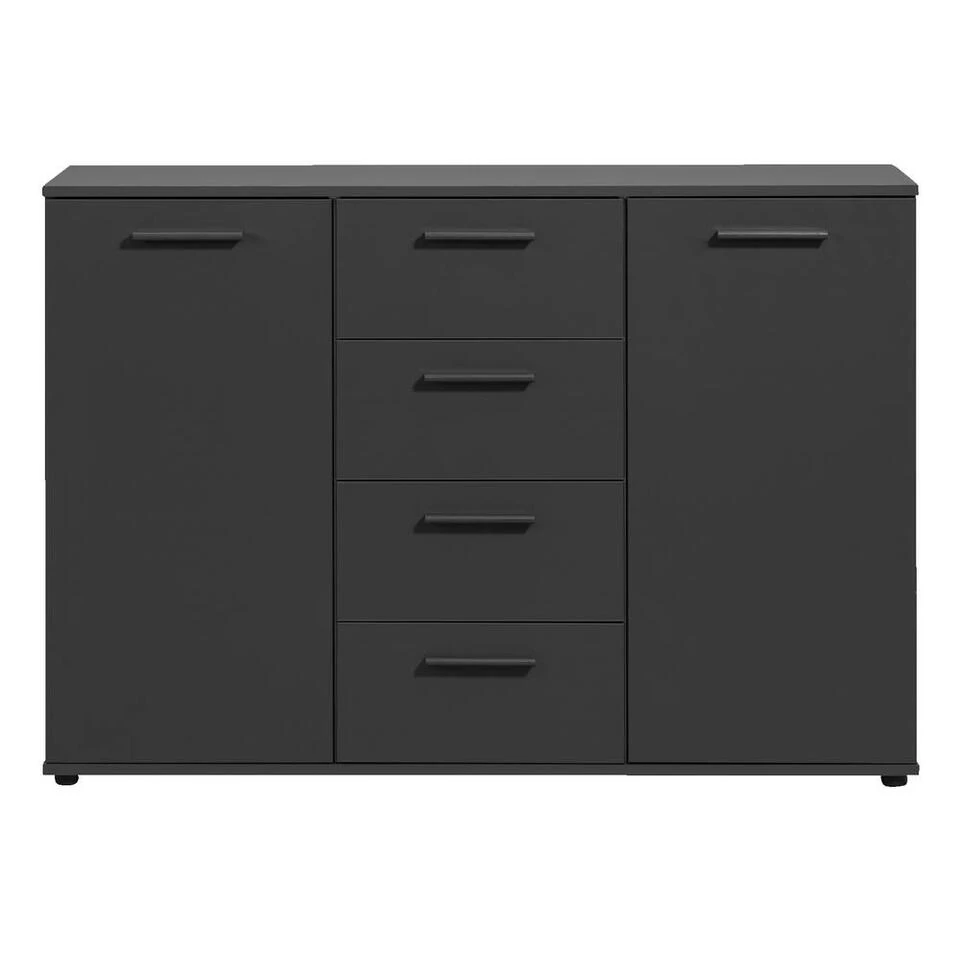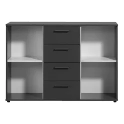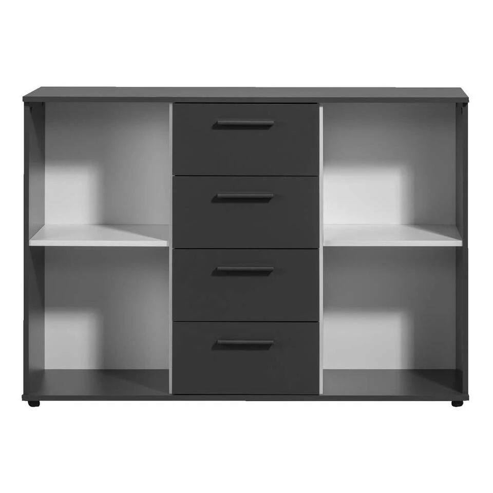 Kast Praag is een prachtige antraciet kleurige kast waar je veel in kunt opbergen. Deze opbergkast heeft een afmeting van 85x120x35 cm en komt overal goed van pas. Dit model heeft twee deurtjes en vier lades met daarachter een zee aan opbergruimte. Door de 2 handige verstelbare planken kan je de kast naar eigen wens indelen. Praag is zowel in de woonkamer, als de keuken en zelfs de slaapkamer goed te gebruiken.