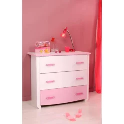 Ladenkast Kiki is wit met roze en heeft 3 lades. Het bovenblad en het frontje van de onderste lade zijn roze . De kast is gemaakt van spaanplaat en past perfect in een echte meisjeskamer. Welke kleine jongedame wil er nou niet zo’n leuk ladenkastje. Combineer met andere delen van de Kiki serie voor een roze prinsessenuitstraling.