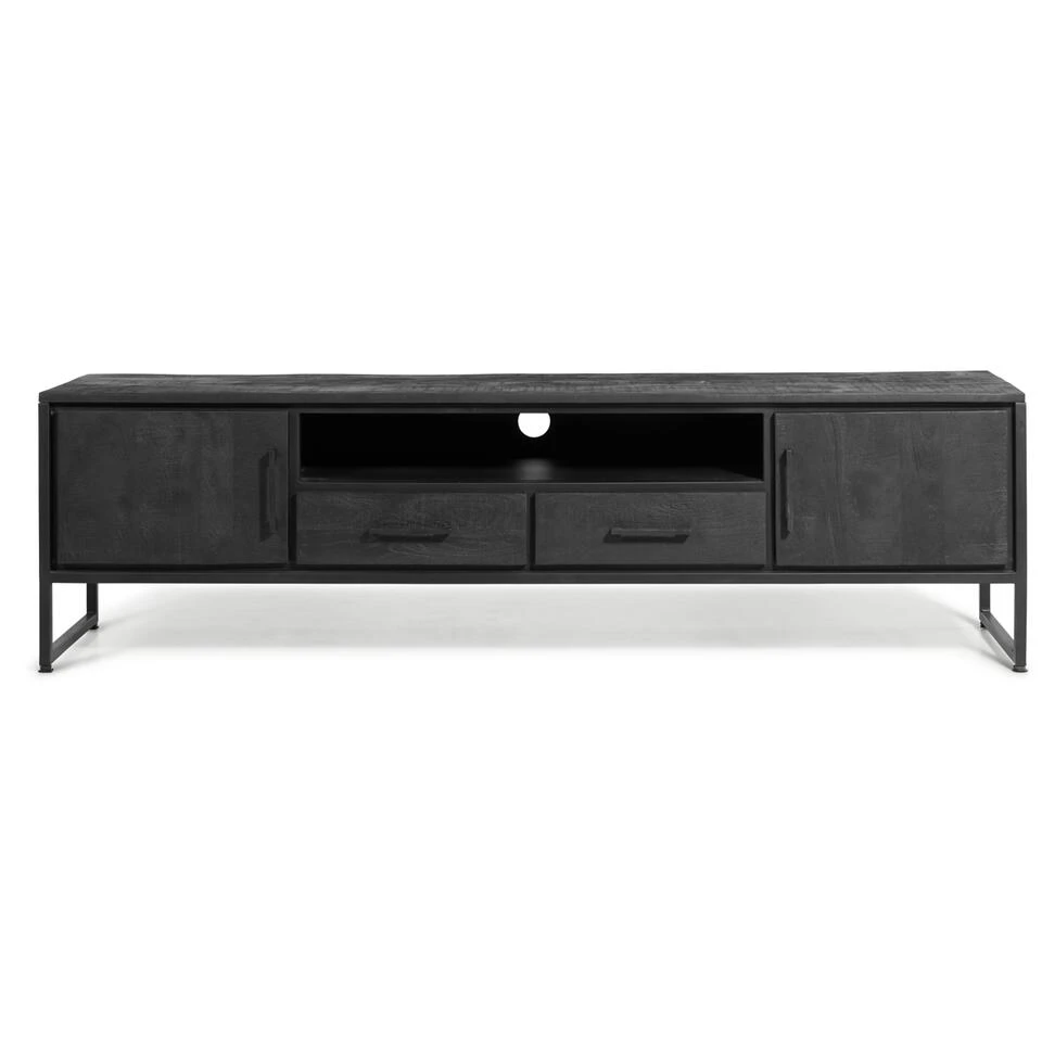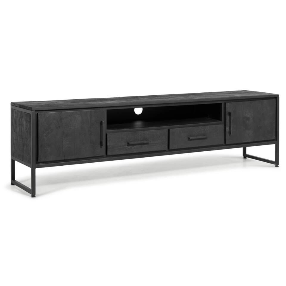 Liam TV-Meubel 180 Zwart – Mango Hout 180x50x40 Cm