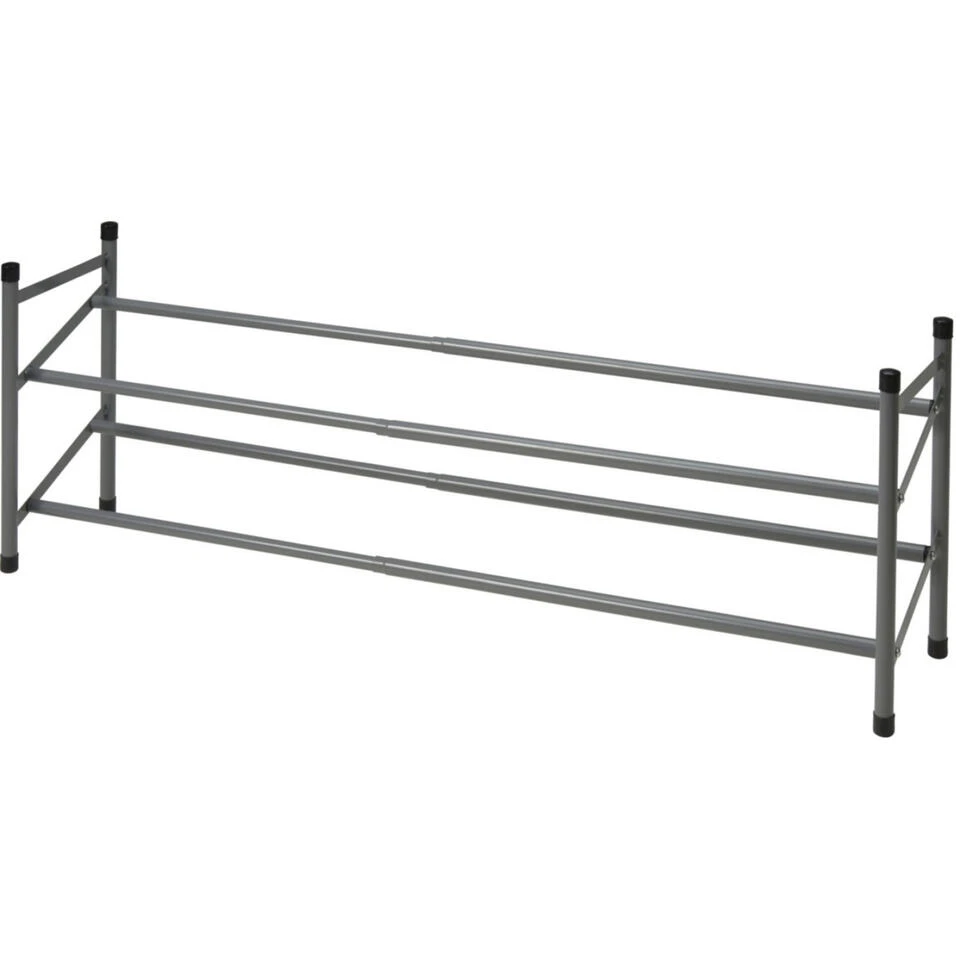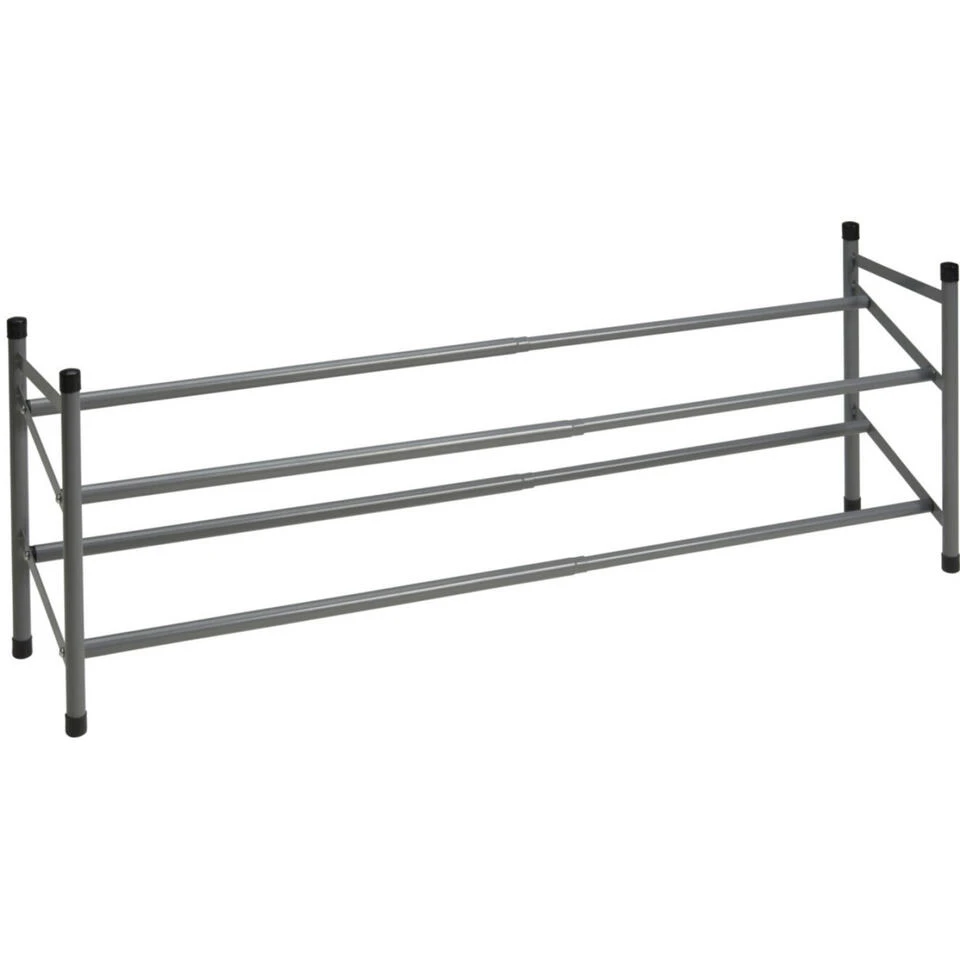 Schoenenrek uitschuifbaar 2-laags. Schoenenstandaard/rek met ruimte voor ca. 10 paar schoenen. Gemakkelijk in elkaar te zetten, wordt geleverd incl. gebruiksaanwijzing. Formaat: ca. 35 x 23 x 61 cm, uitschuifbaar tot 115 cm. Materiaal: RVS.