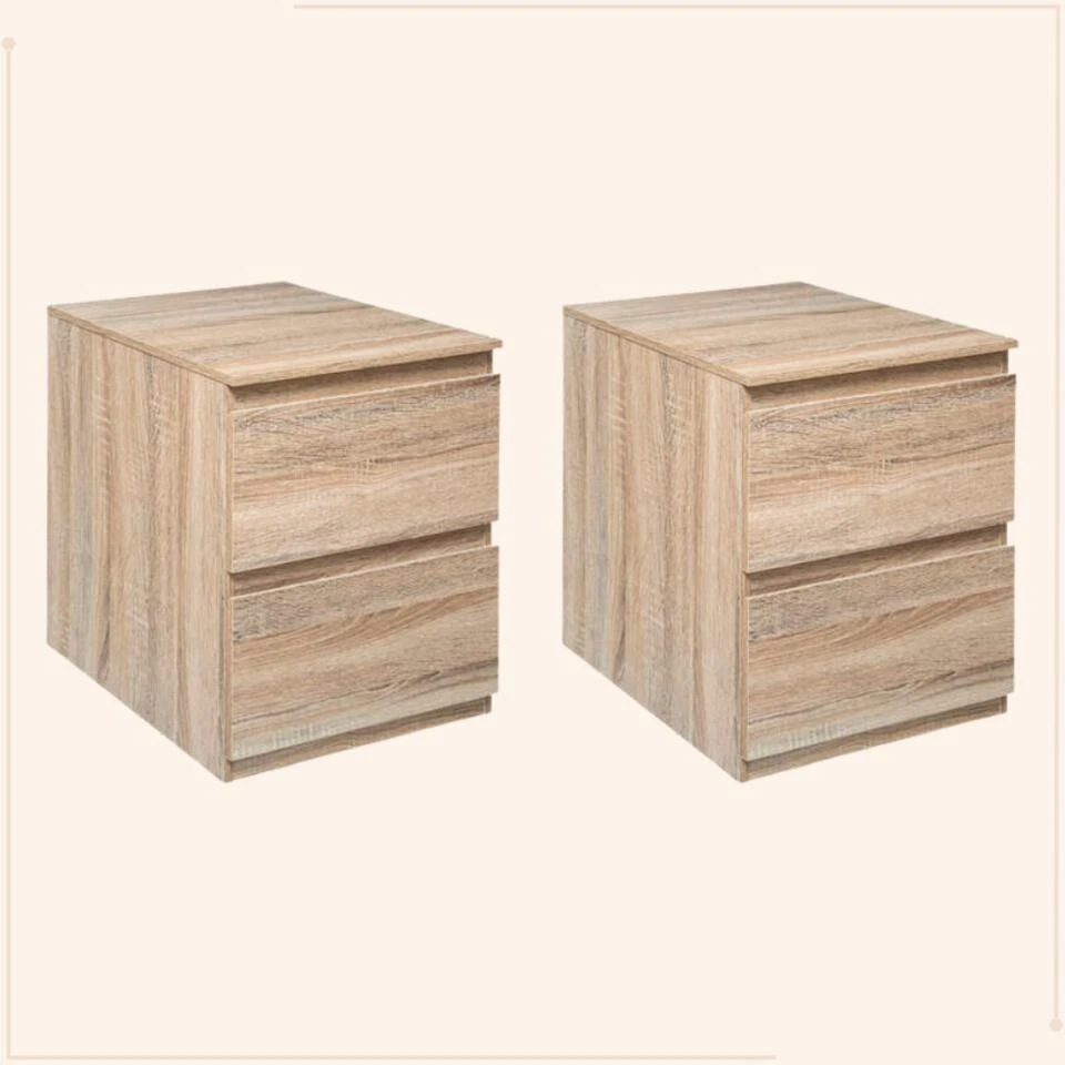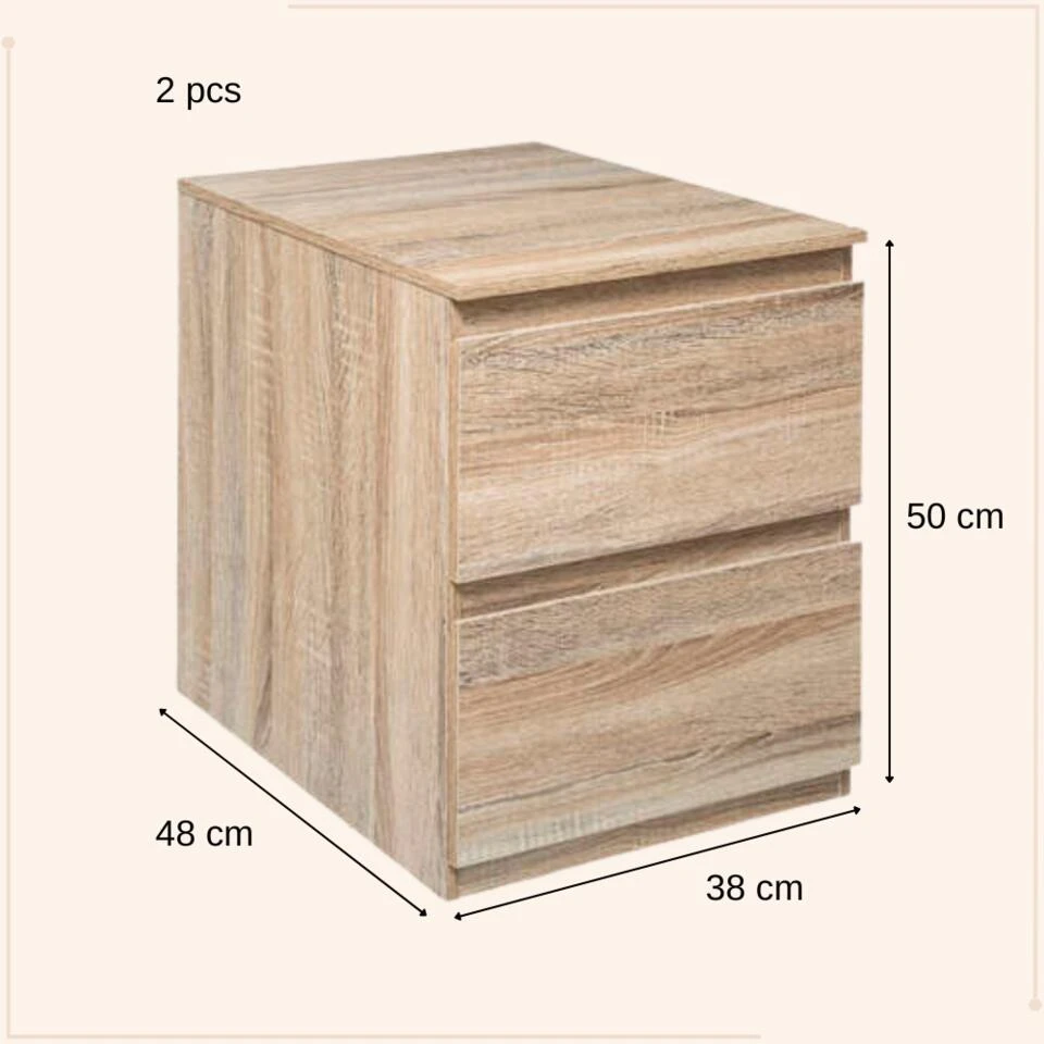 Deze nachtkastjes van MISOU zijn ideaal naast het bed en beschikken over twee lades voor het fijn opbergen van spullen. Door de lichte kleur en het strakke design hebben de nachtkastjes een rustige uitstraling. Dit product vereist zelfmontage.
