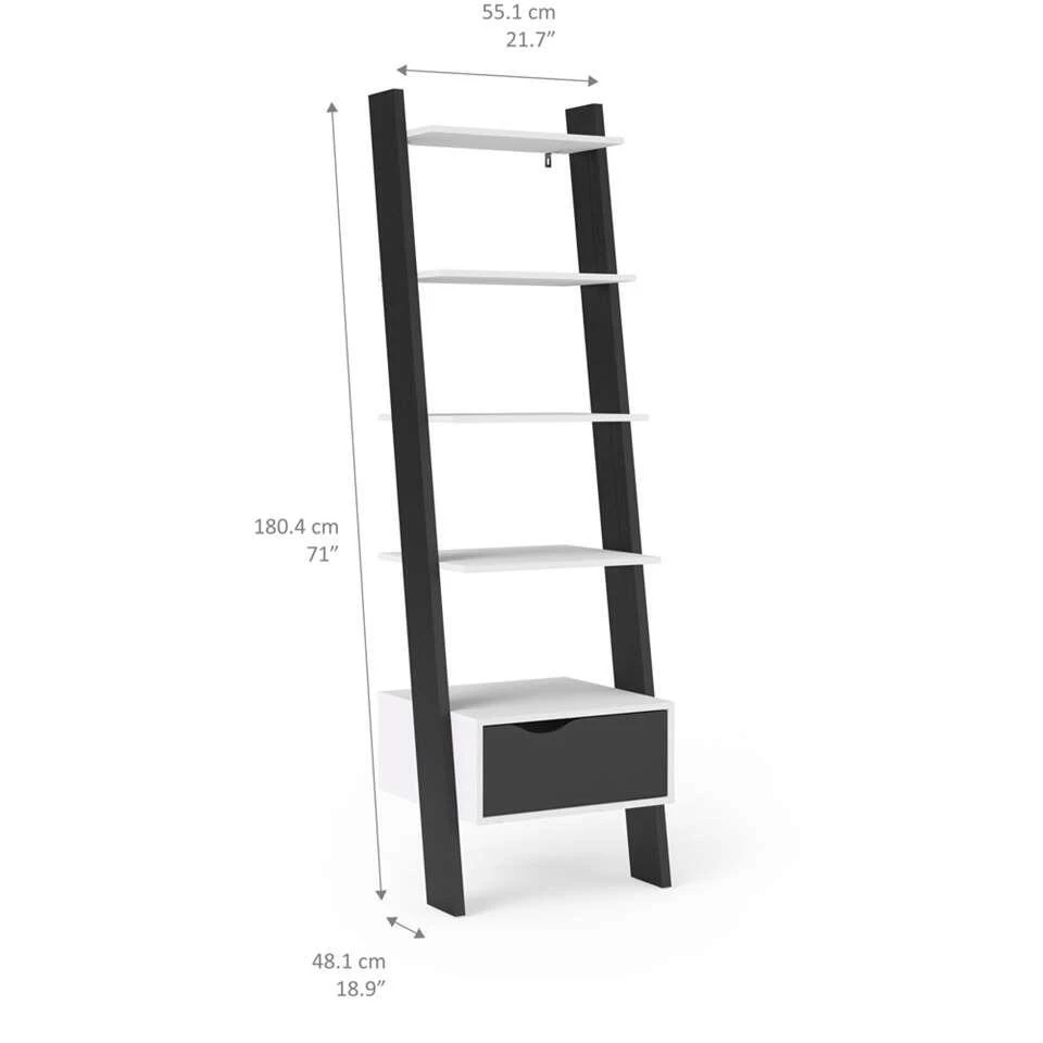 Open boekenkast Delta is wit/mat zwart en heeft een moderne look. Onderin de kast vind je een praktische lade voor het opbergen van losse spullen. Deze kast is niet alleen functioneel, maar ook zeer decoratief. Een echte blikvanger!