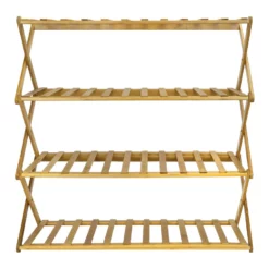 In dit schoenenrek 4-laags heb je voldoende ruimte voor al je schoenen en die van je medebewoners. De schoenenbank is gemaakt van bamboe, waardoor het rek een natuurlijke uitstraling heeft. Je vouwt het rek eenvoudig in en uit, wat het erg gebruiksvriendelijk maakt. Dit schoenenrek 4-laags staat mooi in landelijke en Scandinavische interieurs.