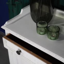 Dit dressoir is verkrijgbaar met twee witte deurtjes, twee zwarte deurtjes, maar ook in een iets smallere variant met één wit deurtje en één zwart deurtje! Zo is er altijd een houten kastje dat perfect past bij jouw eigenzinnige interieur! Het brocante dressoir heeft twee deurtjes met een ruime legplank, een lade over de volledige breedte en een eigenzinnig blad met opstaande commode-rand. Waar komt het jouwe te staan?