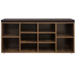 Schoenenbank – Met Kussen – 10 Vakken – 104x48x30 Cm – Vintage Bruin