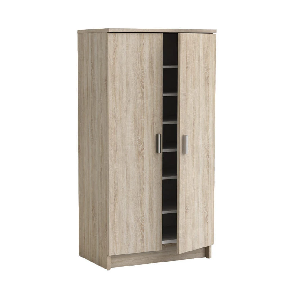 Schoenenkast Cabinet is een ruime schoenenkast maar kan ook als andere opbergmogelijkheid gebruikt worden. De kast heeft 2 deuren, 6 (verwijderbare) legplanken en zilverkleurige grepen. Eenvoudig en praktisch; zo kan je deze kast het best omschrijven. Geen poespas, alles is netjes op te bergen in deze schoenenkast Cabinet. Ook verkrijgbaar in wit (81004559).