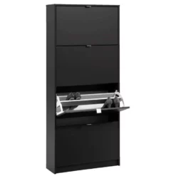 Schoenenkast Hamburg 4 Kleppen – Zwart – 162×70,3×24 Cm