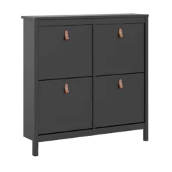 Berg je schoenen netjes en stofvrij op in deze handige schoenenkast Madeira De schoenenkast heeft 3 kleppen en biedt plaats voor ongeveer 15 paar schoenen. Dankzij de stijlvolle vormgeving past de schoenenkast vrijwel in ieder interieur en neemt door zijn diepte van 25 cm niet veel ruimte in beslag.