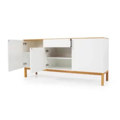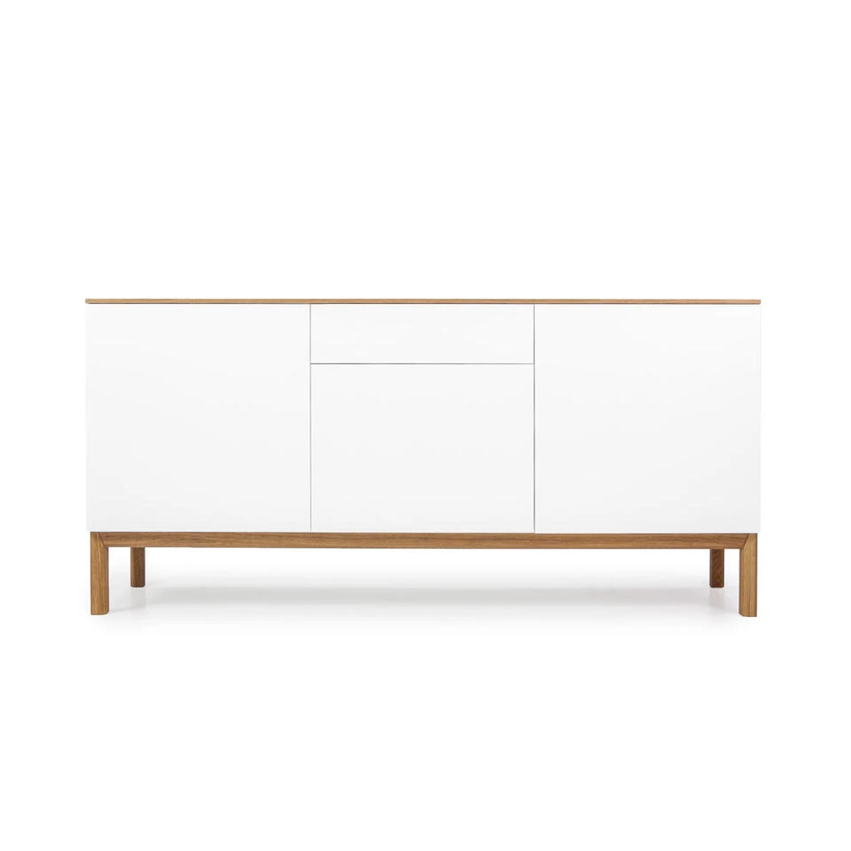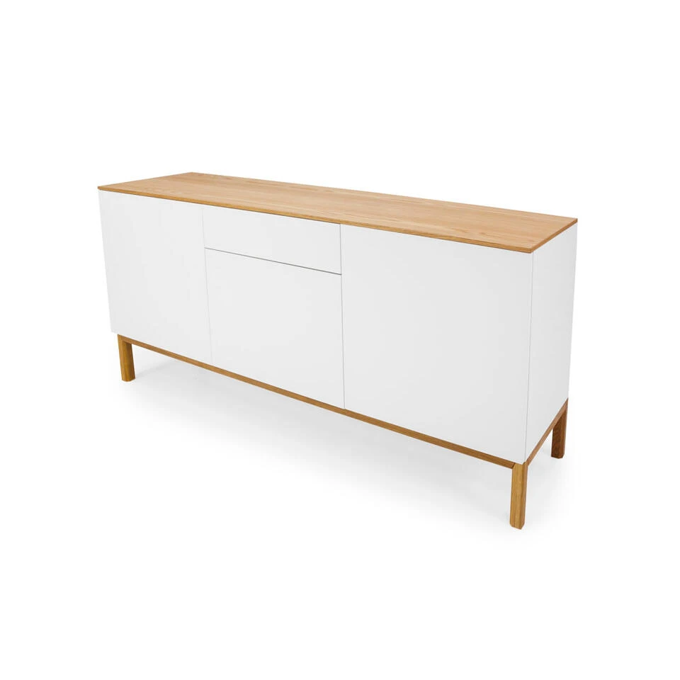 Tenzo dressoir Patch 3 deuren en 1 lade is een kast in moderne stijl. Het dressoir is gemaakt van eikenhout en MDF en het is wit met eikenkleur. Het onderstel en de bovenkant van de kast hebben een eikenkleur, de rest van de kast is wit. Met een totale afmeting van 85x179x47 cm biedt dressoir Patch voldoende opbergruimte voor diverse spullen. Plaats er bijvoorbeeld serviesgoed in of gebruik de kast voor het opbergen van boeken en cd’s. Zet vervolgens wat leuke accessoires, zoals een fotolijstje, een plantje of een beeldje, op het dressoir en maak je interieur helemaal af!
