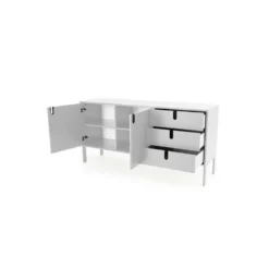 Tenzo dressoir Uno is een kast in moderne stijl. De kast is gemaakt van MDF en hij is wit van kleur. Een neutrale aanvulling op jouw interieur! Met een totale afmeting van 86x171x46 cm biedt dressoir Uno voldoende opbergruimte voor diverse spullen. Plaats er bijvoorbeeld serviesgoed in of gebruik de kast voor het opbergen van boeken en cd’s. Zet er vervolgens wat leuke accessoires op, zoals een fotolijstje, een plantje of een beeldje, en maak je interieur helemaal af!