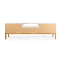 Tenzo tv-meubel Patch is een kast in moderne stijl. Het tv-meubel is wit met eikenkleur: het onderstel is eikenkleur, de kast zelf is wit. De tv-kast biedt voldoende mogelijkheden. Het open vak is uitermate geschikt voor het plaatsen van je receiver, HD-ontvanger of een router. De gesloten vakken kun je gebruiken om diverse spulletjes netjes achter op te bergen. Tv-meubel Patch heeft een totale afmeting van 56x179x47 cm.